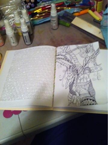 Voici l'exemple en photo de mon papier bulle intégré dans mon nouveau cahier et le foulard ben la je suis pas encore assez avancer dsl. J'abuse maintenant de mon blog hein il est un peu trop actif.