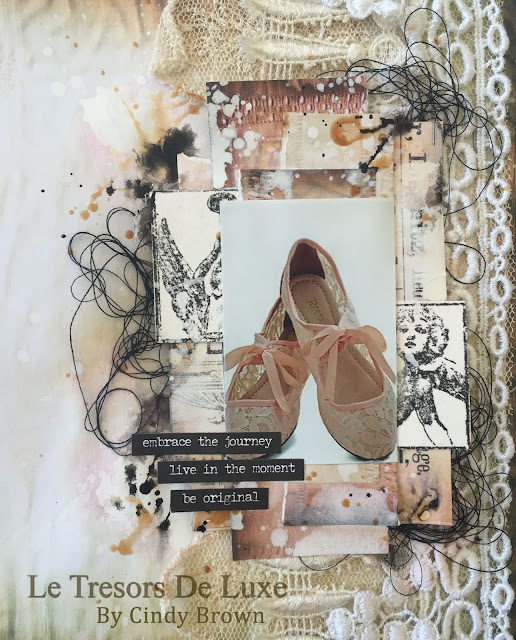 Today I had fun has to make two little art journal page for you. I 'm in love with the Lace. The products of Tresors de Luxe is bautiful.